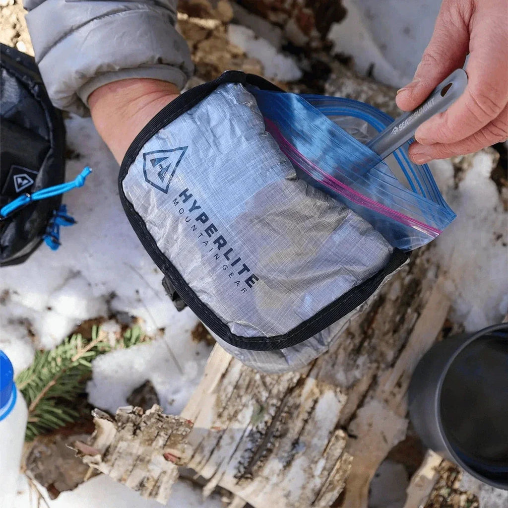 The REpack Freezer Bag Cook System, like most Hyperlite Mountain Gear products, offers you an opportunity to simplify and lighten your load. Repackaging dehydrated food into freezer bags is a great way to decrease pack weight, and the amount of space food packets take up. It’s also a chance to modify meals or make your own. Place the repackaged food bag in the pouch. Add hot water to the meal and take care of other business around camp. REpack serves to keep food warm longer while it rehydrates.