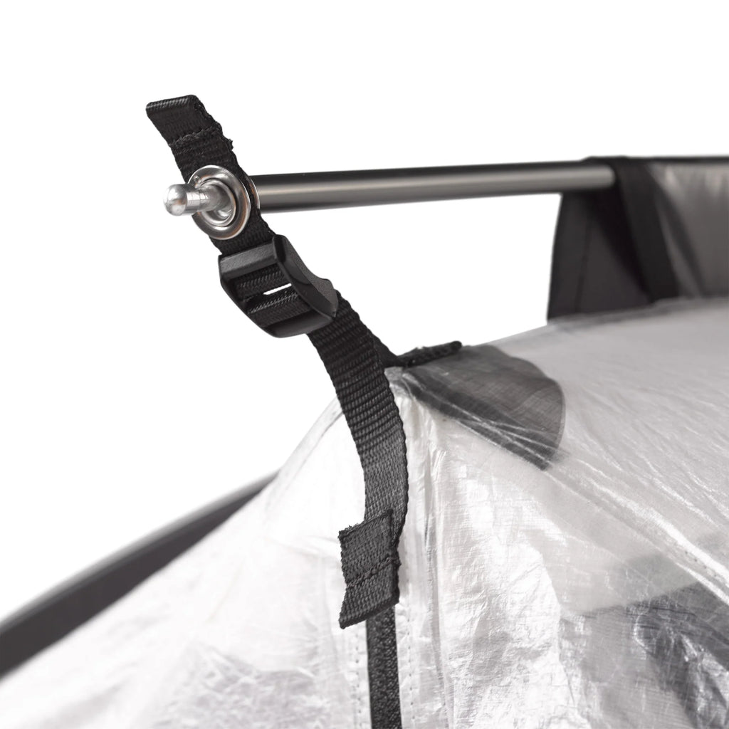 The 20D Sil-nylon pole sleeves and superb guy out points provide a stronger and more storm worthy structure than plastic clip designs.